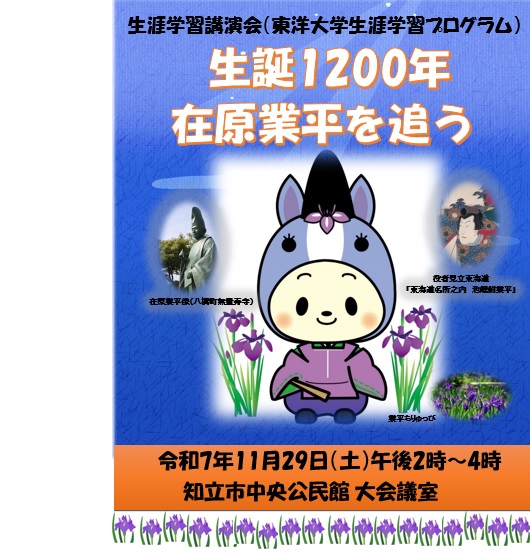 「八橋」や「隅田川」の場面で知られる業平の「東下り」は、専門家の間でも史実と虚構説が交錯しています。業平生誕1200年の今年、ゆかりの地「知立」で、業平の実人生を精緻に分析し、さらに『古今和歌集』『伊勢物語』を正確に読解考察することで、それが史実であることをお話しします。