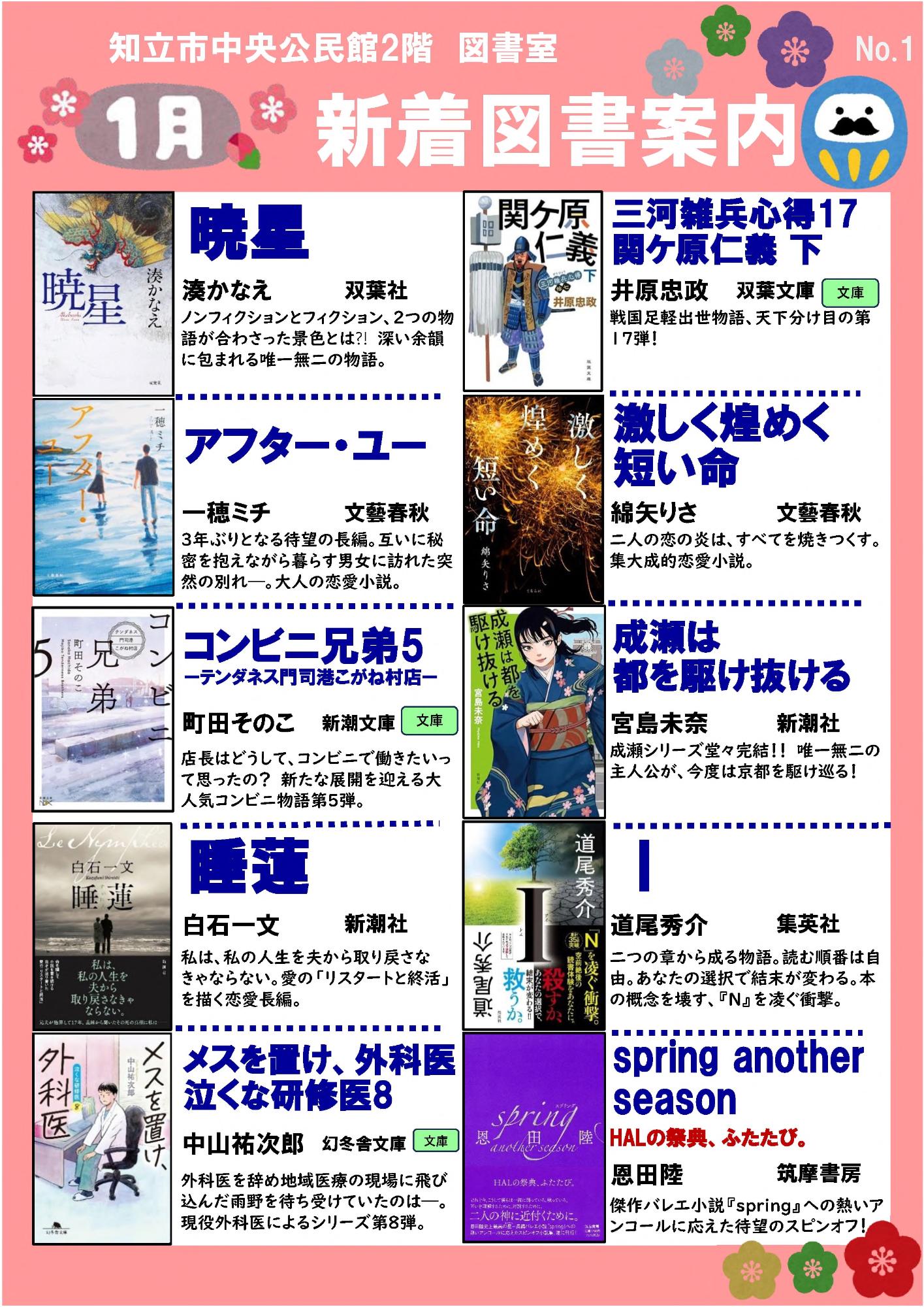 中央公民館図書室新刊案内 更新日:2025年12月25日 中央公民館に新しく加わった本を紹介します! 中央公民館図書室では定期的に新しい本が仲間に加わります! ぜひ読みにお越しください! 【最新版】新刊案内 令和8年1月号(PDFファイル:938.1KB) 過去の新刊案内 令和7年8月号 令和7年9月号 令和7年10月号 令和7年11月号 令和7年12月号 中央公民館図書室について 中央公民館の施設情報 生涯学習スポーツ課 生涯学習係〒472-8666愛知県知立市広見3丁目1番地中央公民館1階電話:0566-83-1165ファックス:0566-83-1166メールフォームでのお問い合わせはこちら