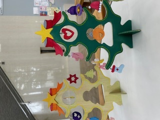 〇クリスマスにピッタリ!飾りがゆらゆら揺れるクリスマスツリーを作ります。