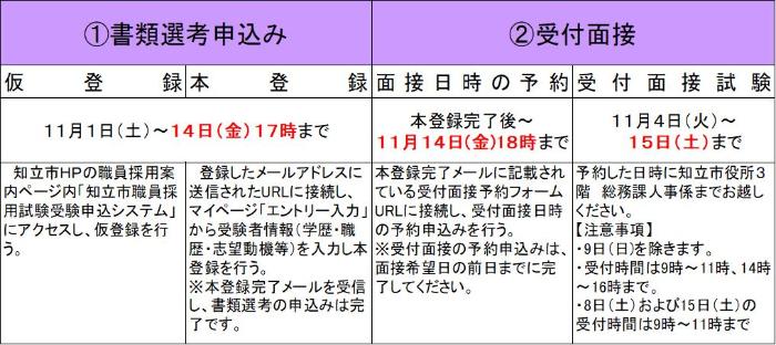 書類選考申込み及び受付面接の詳細については、必ず「知立市職員採用候補者試験要項」をご確認ください。